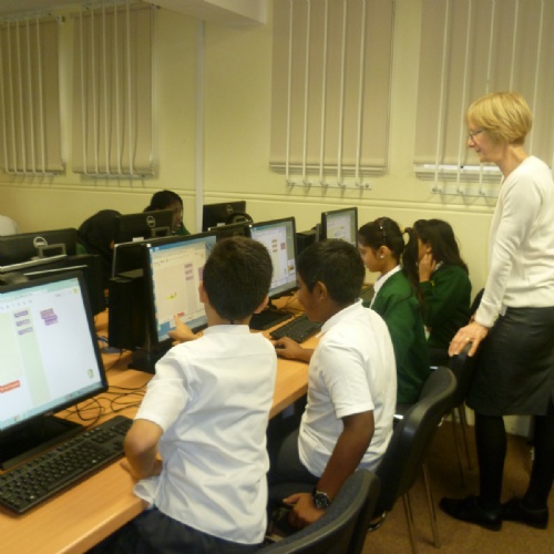 Woodford has been designated the “Digital School House” for the London Borough of Redbridge. Our brief is to provide Inspirational Computing for Kids by supporting the development of the new curriculum in KS2. Throughout the year we will be welcoming Year 5 and 6 classes from schools throughout the Borough who will join us to explore computer programming through an imaginative range of games and activities. Our first young visitors, from Mayespark Primary, took the notion of algorithms in their stride as they explored the sequencing of instructions (through a large scale hokey cokey ) before grappling with the programming language “Python” to write their first code.