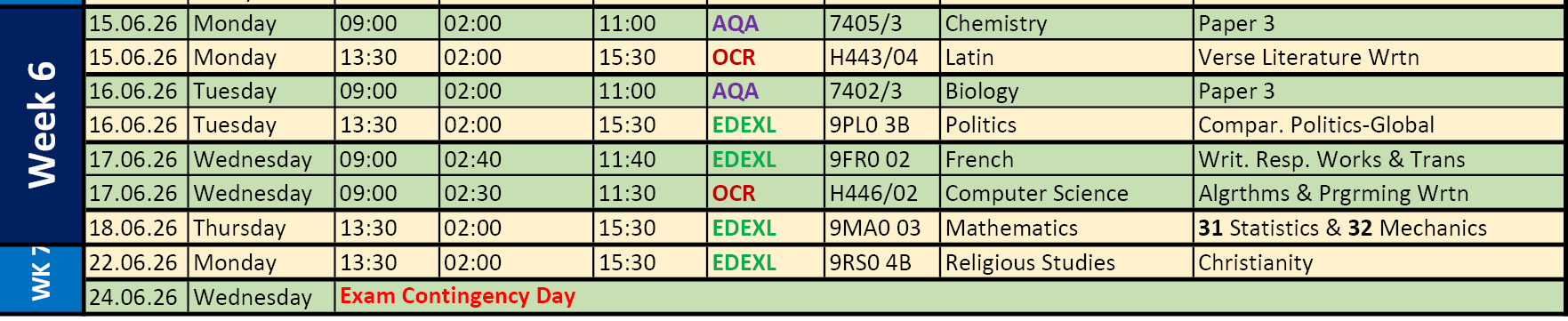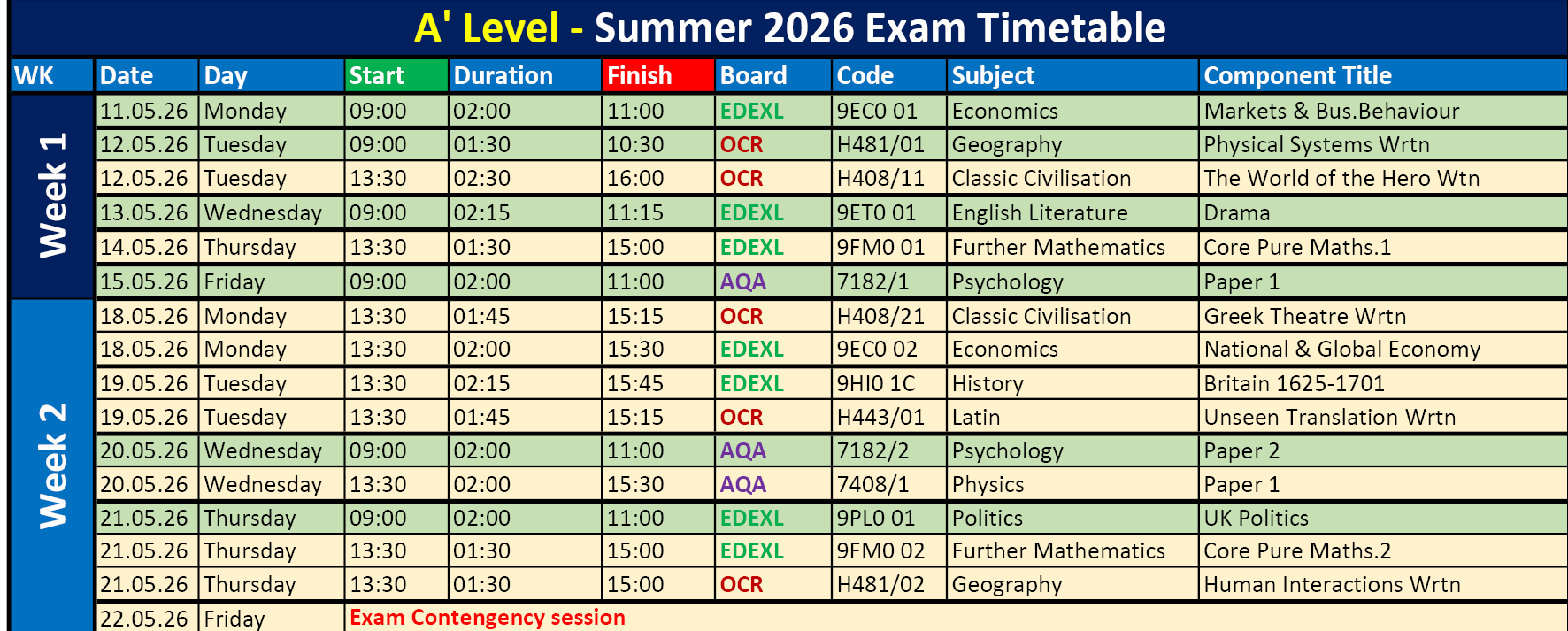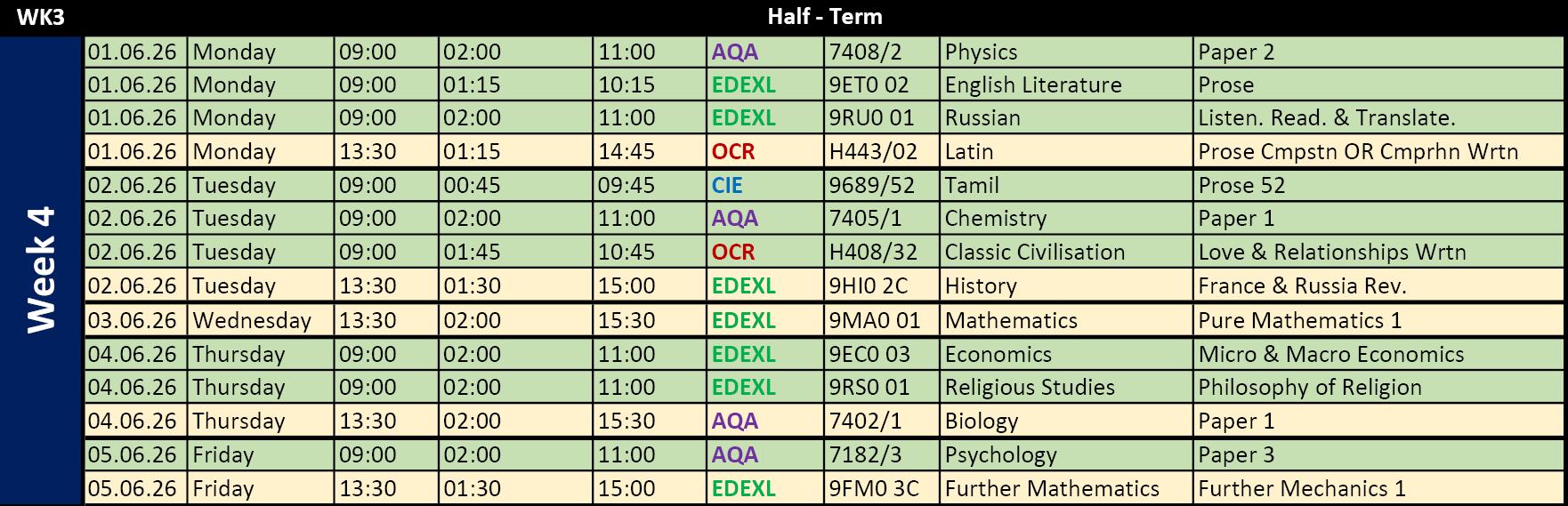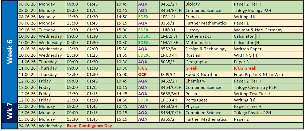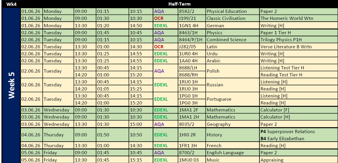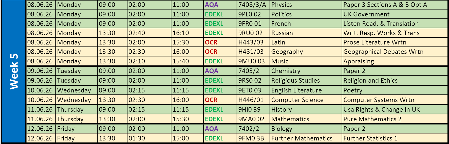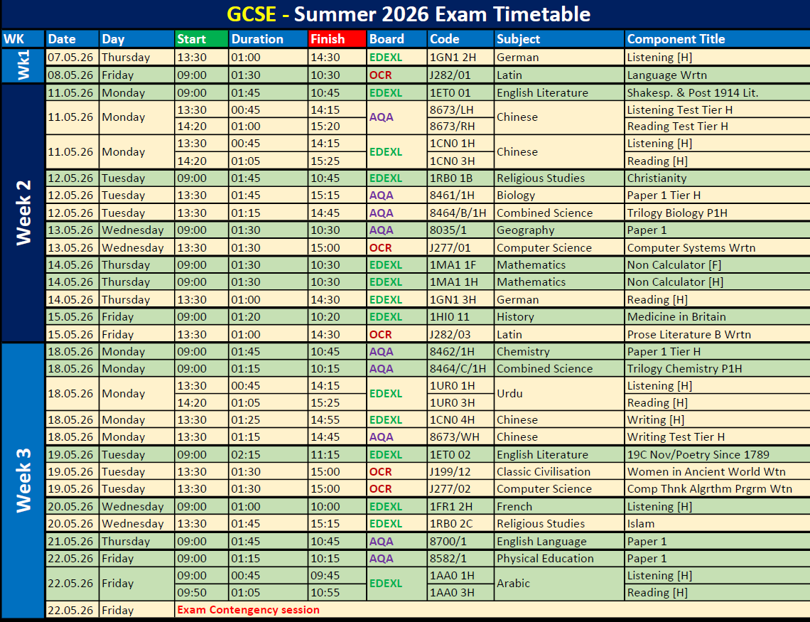 • SUMMER 2026 EXAM TIMETABLES